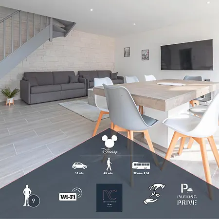 Το διαμέρισμα *Disneyland-Paris* 9 Pers, 2 Parkings, Wifi, Ac είναι μόλις 2 χλμ. μακριά από Ντίσνεϋλαντ του Παρισιού. Το κατάλυμα διαθέτει 1 υπνοδωμάτια και 1 μπάνια.